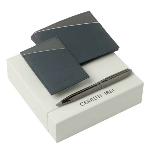 Set CERRUTI 1881 Dark Blue (ballpoint pen, key ring & card holder)
