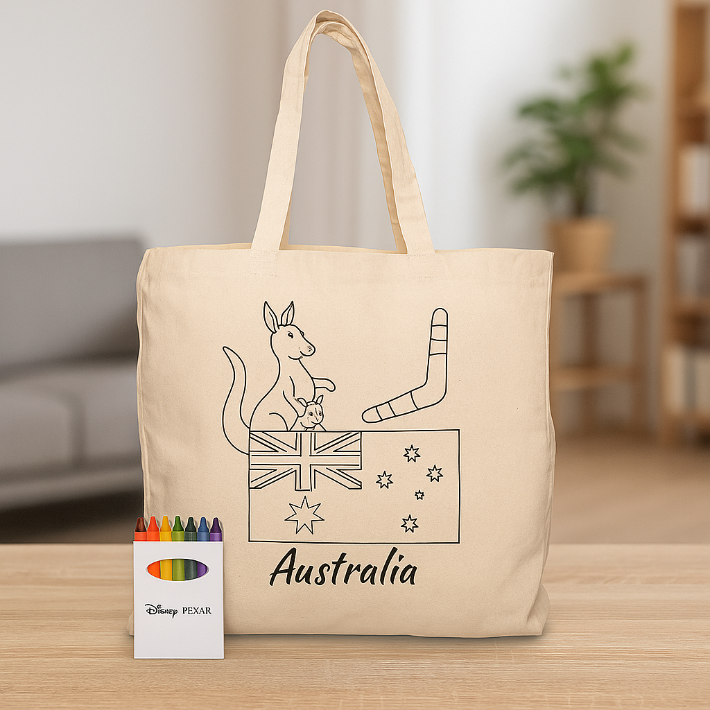 Shockingly bold and bright. The Squiggle Calico bag + Crayon set adds vibrancy to all your colouring needs when you want to add that “WOW” factor. Let your artistry stand out and donít be let down by dull tools. Bring your art to life with The Squiggle Calico bag + Crayon set. It includes 8 coloured crayons (red, orange, yellow, green, blue, purple, pink and black and is made from non-toxic materials. Warning: choking hazard ñ small parts. Not suitable for children under 3 years. The bag is 140gsm cotton material, this Calico Tote Bag is durable and comfortable to suit your priorities.