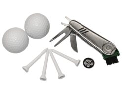 This quality golf pack is designed to attach to your golf bag and includes 2 golf balls, 4 tees and a handy stainless steel golf tool with ball marker.